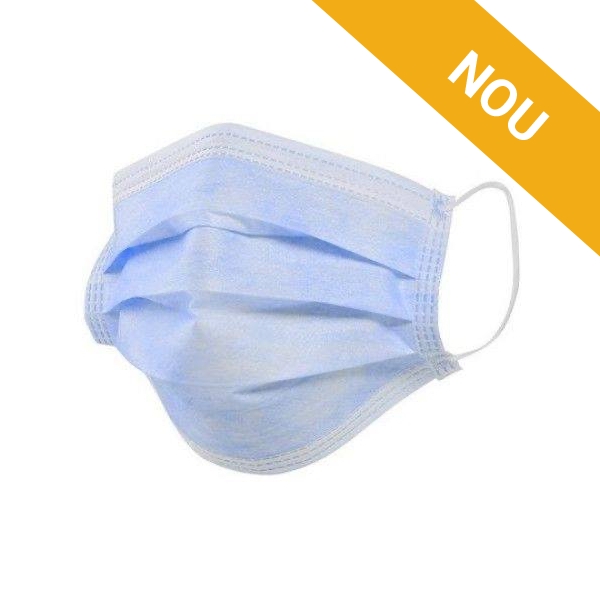 Masca faciala este de unica folosinta si are trei straturi de protectie. Este prevazuta cu elastic pentru prindere dupa urechi.