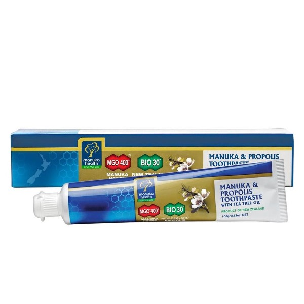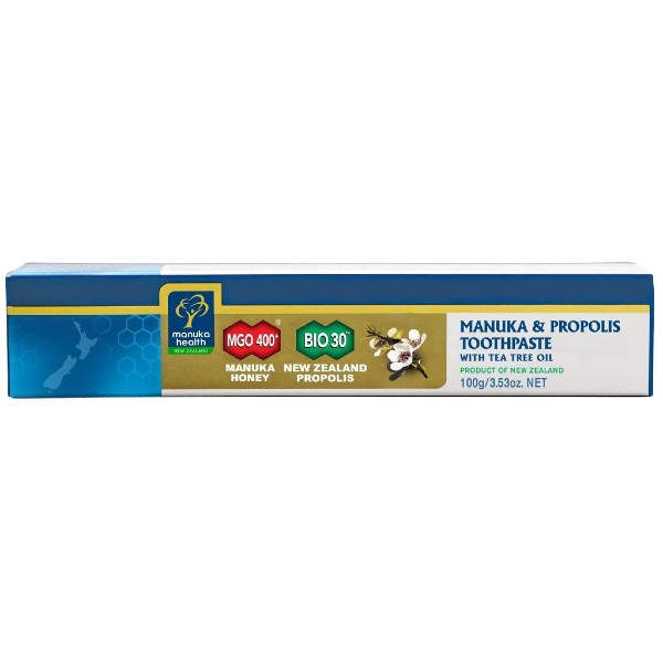 Pasta de dinti fara fluor cu miere de Manuka MGO 400+, propolis BIO30 si ulei din arbore de ceai Manuka Health este o pasta de dinti cu un gust racoritor si discret care curata delicat si protejeaza dintii si gingiile, datorita continutului de miere de Manuka MGO 400+, propolis si extracte naturale din plante.