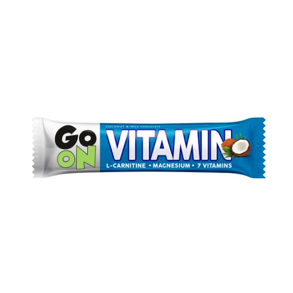 GO ON Vitamin Bar este un baton proteic imbogatit cu vitamine si cu nuca de cocos, fiind invelit cu ciocolata cu lapte. Este un baton proteic delicios dedicat sportivilor si persoanelor active. Fiind imbogatit cu vitamine, magneziu si l-carnitina, batonul ofera toti nutrientii esentiali necesari unei persoane active.