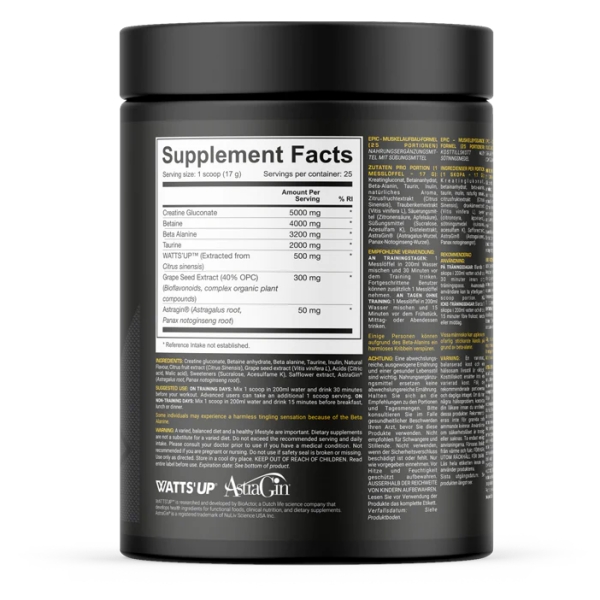 EPICTM contine dozele potrivite de creatina, beta alanina, betaina si alte ingrediente avansate, care lucreaza la fel ca tine. Combinatia unica de ingrediente in dozele lor specifice fac din acest supliment un produs unic.