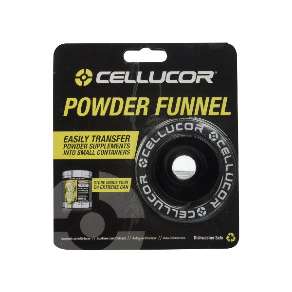 Palnia de la Cellucor face mai usoara transferarea suplimentelor sub forma de pudra intr-un recipient mai mic, precum sticlele de apa sau shakerele. Palnia minimizeaza scurgerile pudrei proteice pe langa.
