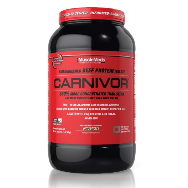 Fiecare portie de MuscleMeds Carnivor ofera ~23 g de proteine din carne de vita, 2.5 g de creatina si un plus de aminoacizi. Suplimentul proteic Carnivor este cu 350% mai concentrat decat o friptura si mult mai concentrat decat izolatul din zer.