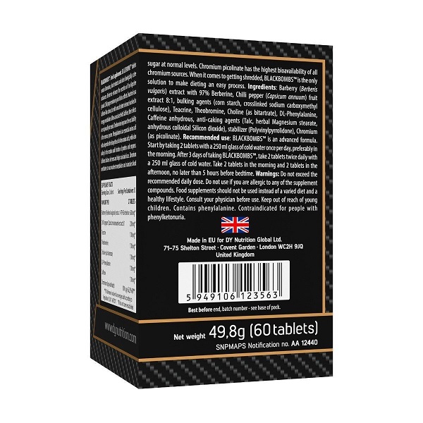 Descrierea produsului Dorian Yates Nutrition BlackBombs 60 Tabs | Arzator de grasimi termogenic