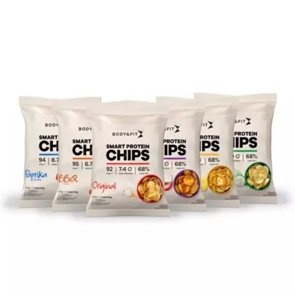 Chipsurile Smart Protein Chips de la Body&Fit sunt “smart” in toate felurile! Nu numai ca au un continut sarac de calorii, grasimi si carbohidrati, chipsurile sunt bogate in proteine. Nu contin conservanti, coloranti, arome artificiale sau aditivi artificiali. Crocante si delicioase, Smart Protein Chips nu sunt nici coapte, nici prajite. Acestea sunt preparate in aer cald si asezonate cu cele mai bune condimente.