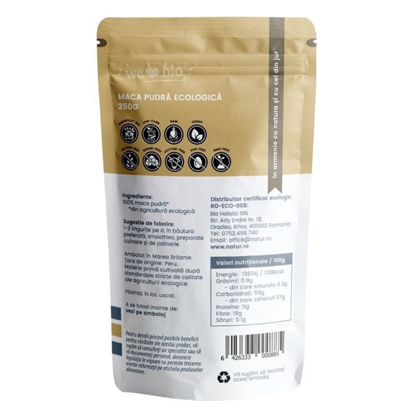 Ingrediente: *100% maca pudra. *din agricultura ecologica
