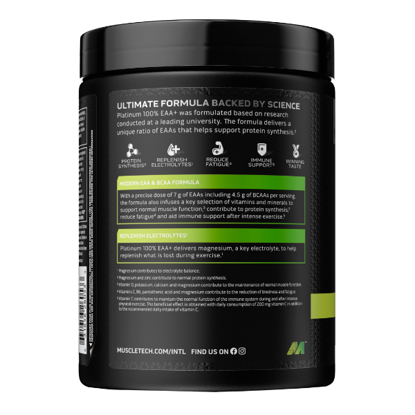 Platinum 100% EAA+ este combustibilul de care ai nevoie, ajutand la inlocuirea electrolitii esentiali care se pierd in timpul antrenamentelor.