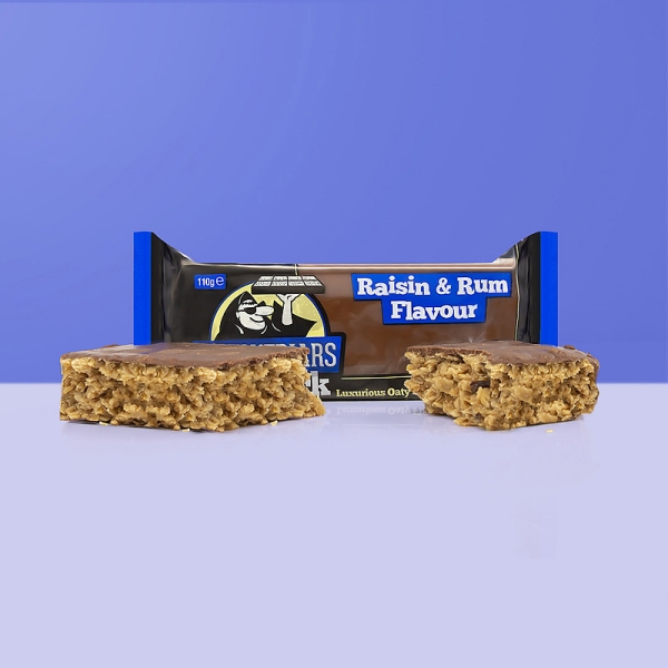 Stafide & Rom: Prajitura cu ovaz, stafide, esenta de rom & topping de ciocolata.