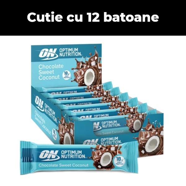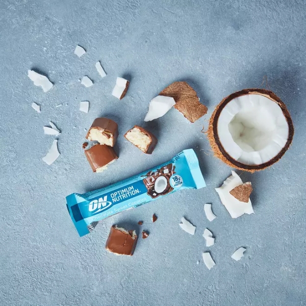 Incarca-te cu energie cu batonul Optimum Nutrition Chocolate Sweet Coconut Protein Bar.