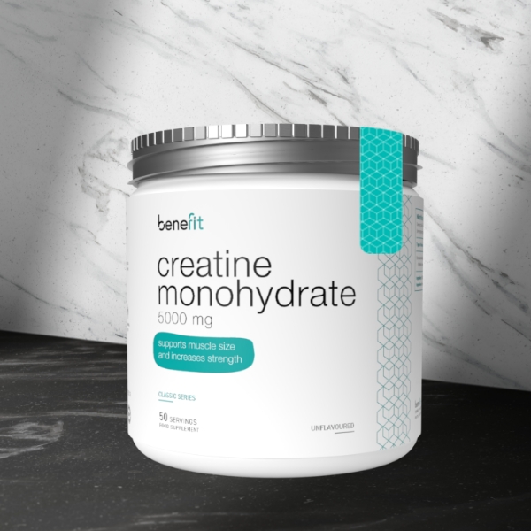 Creatina Benefit este conceputa din creatina monohidrata premium, optimizata pentru o absorbtie buna fiind cel mai popular supliment pre workout sau post workout pentru refacere musculara si forta.