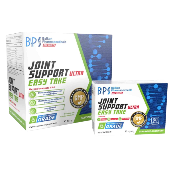Balkan Pharmaceuticals Joint Support Ultra Easy Take– supliment alimentar care contine o doza mare de MSM, precum si extracte naturale din Curcumina si Boswellia, care ajuta la reducerea inflamatiei in corp, scad durerile si inflamatiile articulare, redau flexibilitatea pentru a te mentine activ.