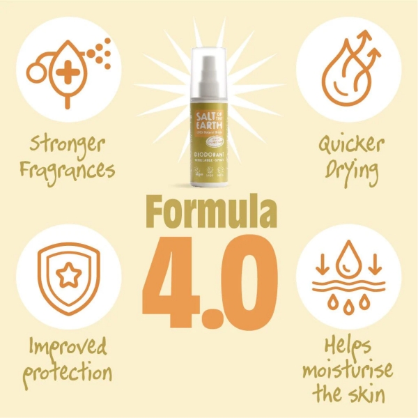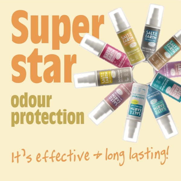 Avand ca note de top portocala si lime si note de baza neroli, deodorantul spray Salt of the Earth are un efect de durata, ofera protectie eficienta impotriva mirosului neplacut de transpiratie si este conceput din ingrediente 100% naturale, incluzand aloe vera calmanta si magneziu.