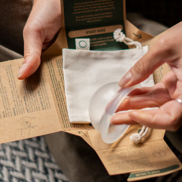 Pozitionare: Discul menstrual are un design plat si se aseaza mai sus in canalul vaginal, fixandu-se discret in spatele osului pubian. Prin comparatie, o cupa menstruala are forma de clopot si se pozitioneaza mai jos, formand un sigiliu prin aspiratie.