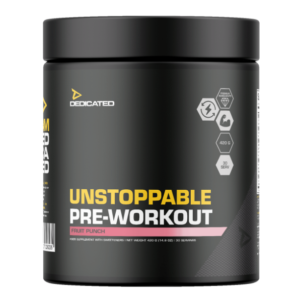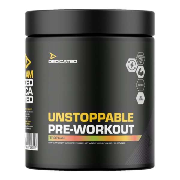 Unstoppable de la Dedicated este un puternic pre-workout care te ajuta sa iti imbunatatesti performantele sportive datorita ingredientelor pe care le contine, in doze puternice pentru rezultate maxime. Dupa administrarea acestuia, mintea ta va fi mai focusata pe antrenamente si vei simti cum nivelul tau de energie creste.