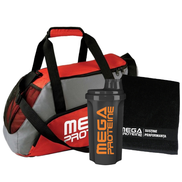 Creata din poliester, geanta sport Mega Proteine este spatioasa si usor de folosit. Are un compartiment principal si unul secundar, prevazute cu fermoare. Este de nuante gri-rosu si are urmatoarele dimensiuni: lungimea: 55 cm; latimea: 30 cm; inaltimea: 28 cm.