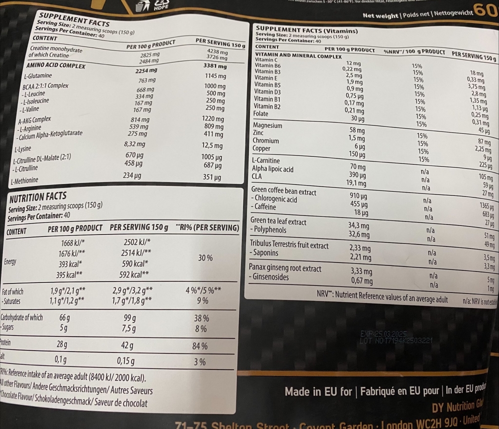 Mod de administrare Dorian Yates Nutrition Metabolic Mass Gainer 6 kg