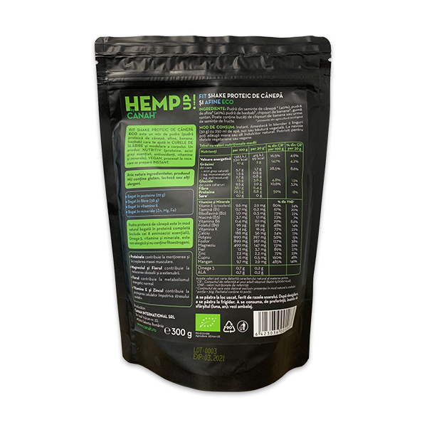 Descrierea produsului Fit Shake proteic de canepa si afine eco Canah 300 g