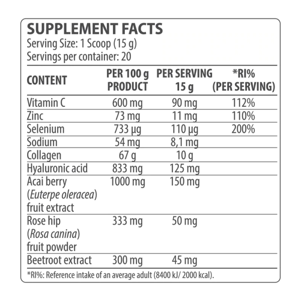 Mod de administrare Dorian Yates Nutrition Collagen Complex 10000 mg Grape 300 g | Complex cu colagen, acid hialuronic & vitamina C