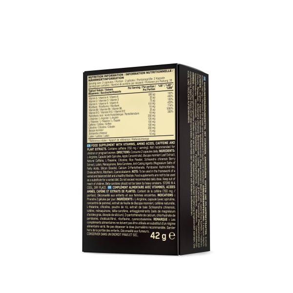 • un supliment puternic imbogatit cu 14 ingrediente active, inclusiv cofeina pentru o stare de alerta sporita si concentrare imbunatatita.