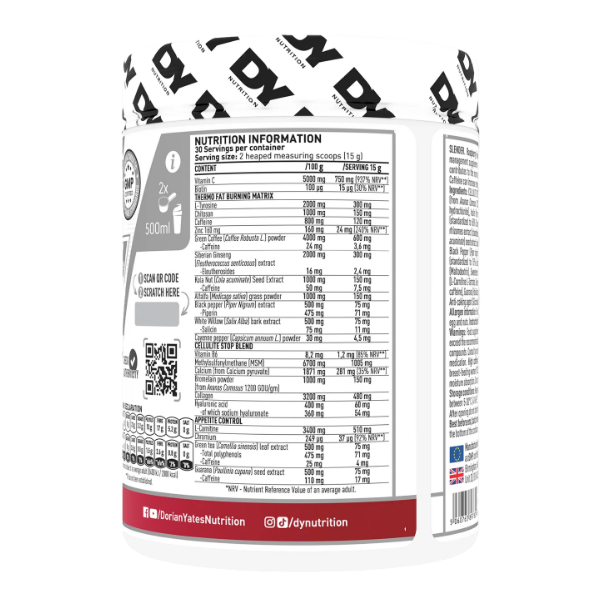 Descrierea produsului Dorian Yates Nutrition Slender Cellulite & Fat Burner 450 g | Arzator de celulita & grasimi