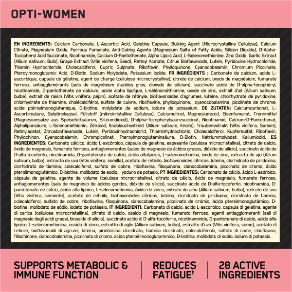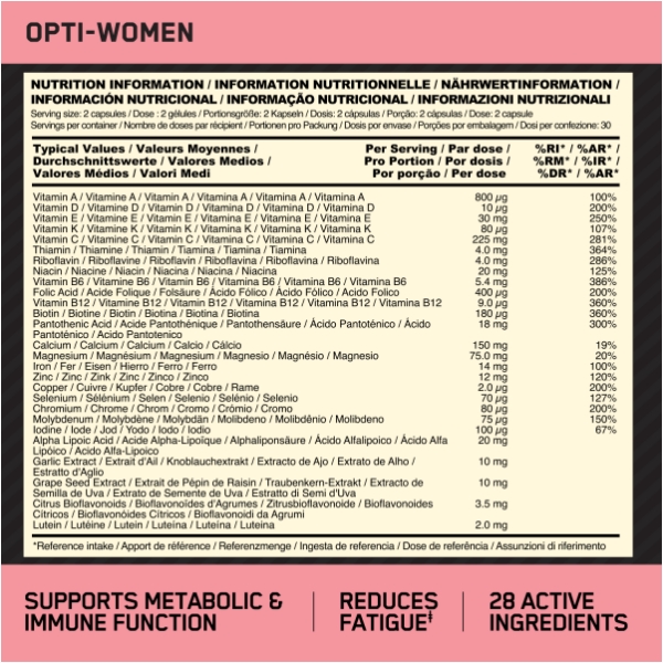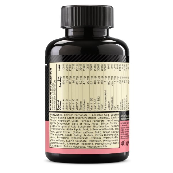 Opti-Women a fost gandit ca un sistem optim de nutritie cu componente naturale, antioxidanti, inmagazinand 40 de principii active intr-o singura capsula.